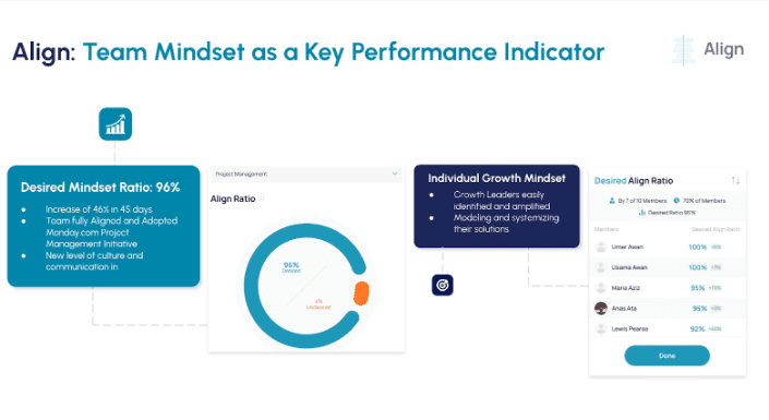 Through the company’s coaching, his individual “Desired Align Ratio” reached 92%, contributing to the team’s overall 96% Desired Mindset Ratio.